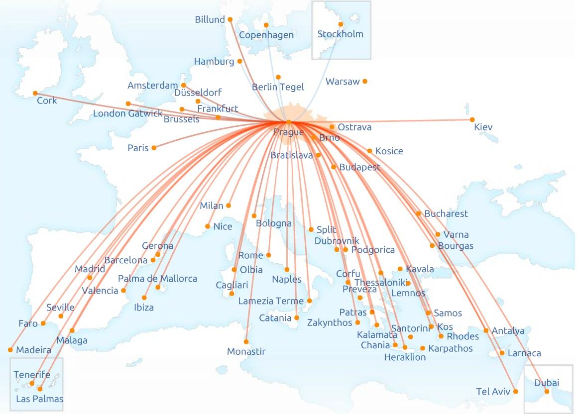 Czech Airlines j.s.c. (CSA České aerolinie, a.s.) è la compagnia aerea di bandiera della Repubblica Ceca e fa parte del gruppo Smartwings, fornisce i suoi servizi dall'ottobre del 1923, il che la rende una delle cinque compagnie aeree più antiche del mondo. Czech Airlines è un membro fondatore dell'Associazione Internazionale del Trasporto Aereo (IATA) ed è membro dell'alleanza SkyTeam dal 2001, come indicato nella mappa delle rotte di Czech Airlines.